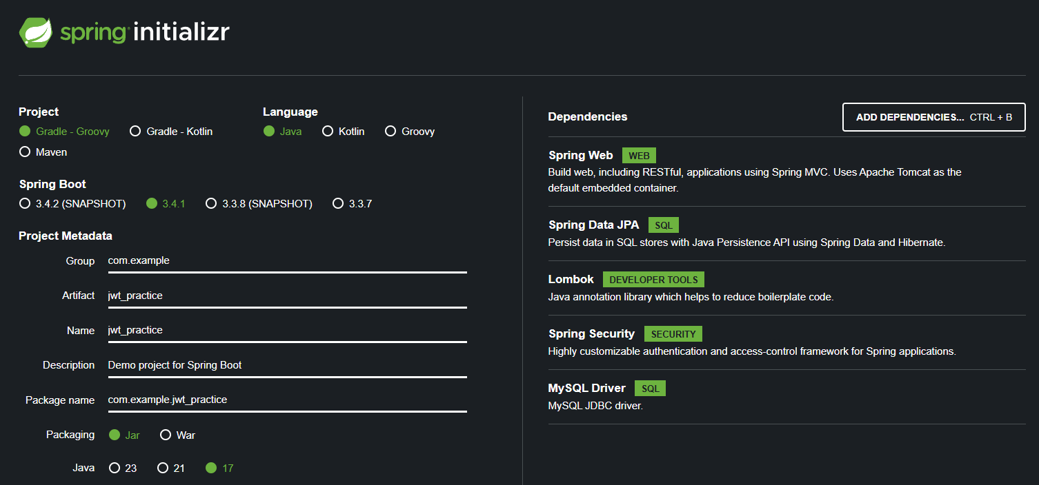 | 스프링 JWT(3): JWTFilter (3) | 2025.01.09 |